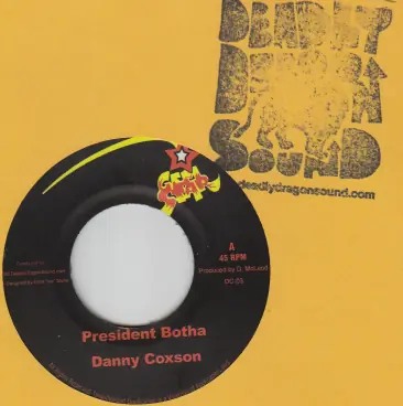 ++Deadly Dragon Sound EXCLUSIVE reissue!++ Danny Coxson - President Botha 7" reissue. Back in 1988 Danny Coxson recorded this tune in a London studio. He returned to NYC and released it on his own Gem Star label. Upon his return to Jamaica, the tune faded into obscurity. But as the decades passed it became recognized as a classic 1980s Digital Roots tune. In 2010 Danny Coxson contacted Deadly Dragon Sound and they worked out a partnership to reissue some of his classic tunes as well as some unreleased. These tunes were all taken from Danny's original master tapes and pressed in NYC in a limited edition of 500 pieces. |
