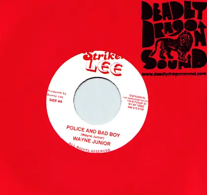 Originally released as an LP cut in the late 80s, Wayne Junior's "Police and Bad Boy" has become a cult classic for true lovers of Digikal reggae. Deadly Dragon Sound, working directly with producer Bunny "Striker" Lee, has re-mastered this classic and released it for the first time on 7". This exclusive pressing contains both the original Sleng Teng mix and a never before released version over the Shang Kai Shek riddim. Limited edition press of 500pcs. This will be available for sale May 21, 2007. |